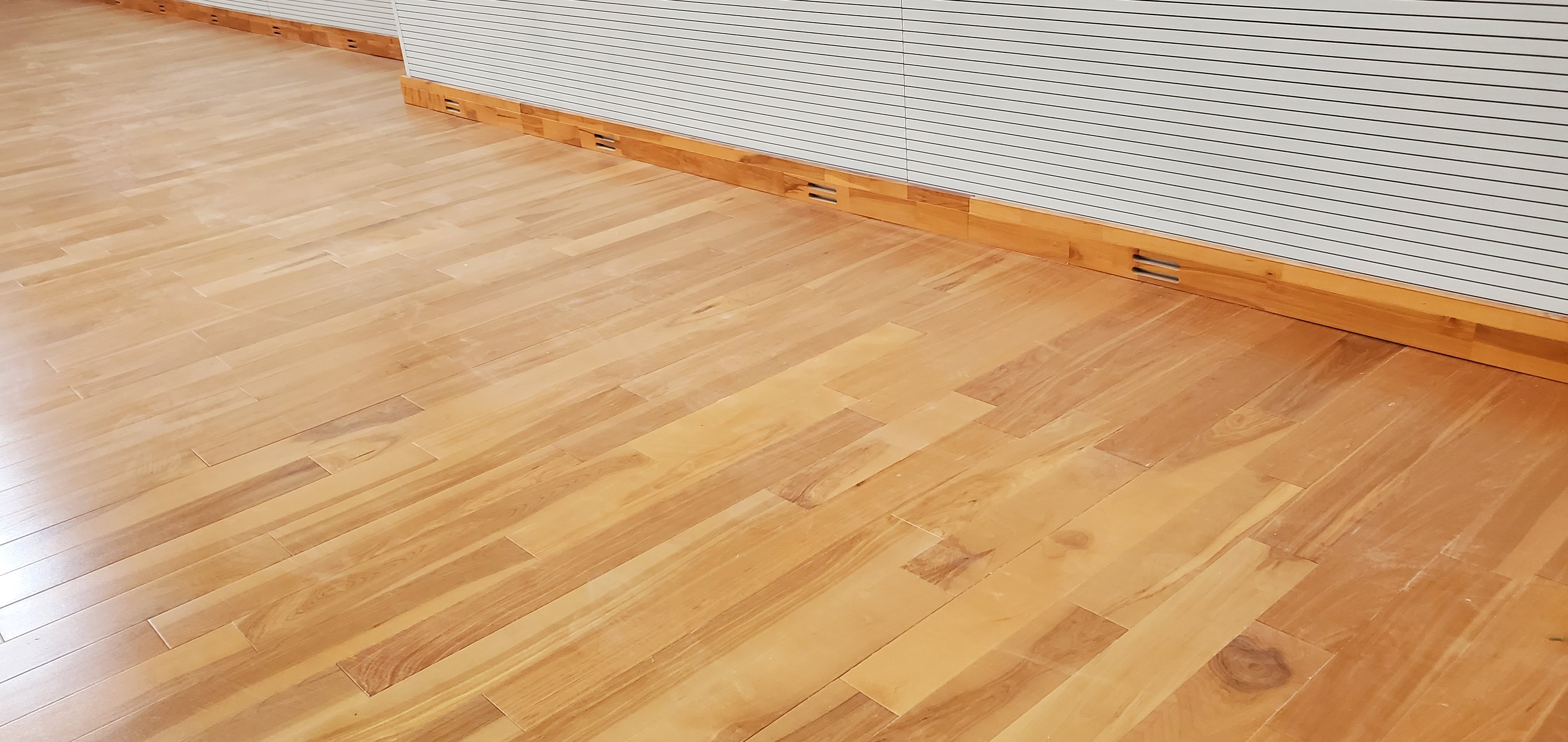 针对商用场景,柚木地板强化表层工艺,某高端商铺铺设后反馈 “柚木地板经日均千人踩踏 1 年,表面仍无明显磨损,天然木纹的视觉吸引力让店铺客流停留时间增加,完全契合高端商用对质感与耐用性的双重需求”。